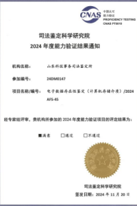 山東科技事務(wù)司法鑒定所成立于2002年,經(jīng)山東省司法廳批準、司法部備案設立,是山東省內極具權威性的司法鑒定機構。機構聚焦電子數據存在性與功能性鑒定,以全部項目為“滿(mǎn)意”結果通過(guò)司法部司法鑒定科學(xué)研究院組織的能力驗證,并通過(guò)省級電子數據鑒定檢驗檢測機構資質(zhì)認定(CMA)。依托獨立標準化實(shí)驗室與國內先進(jìn)的鑒定儀器設備,機構在電子數據固定、提取分析、恢復及應用軟件功能鑒定等方面形成強大技術(shù)優(yōu)勢,可高效應對各類(lèi)復雜電子數據鑒定案件,為司法機關(guān)與企業(yè)提供堅實(shí)的技術(shù)支撐。
